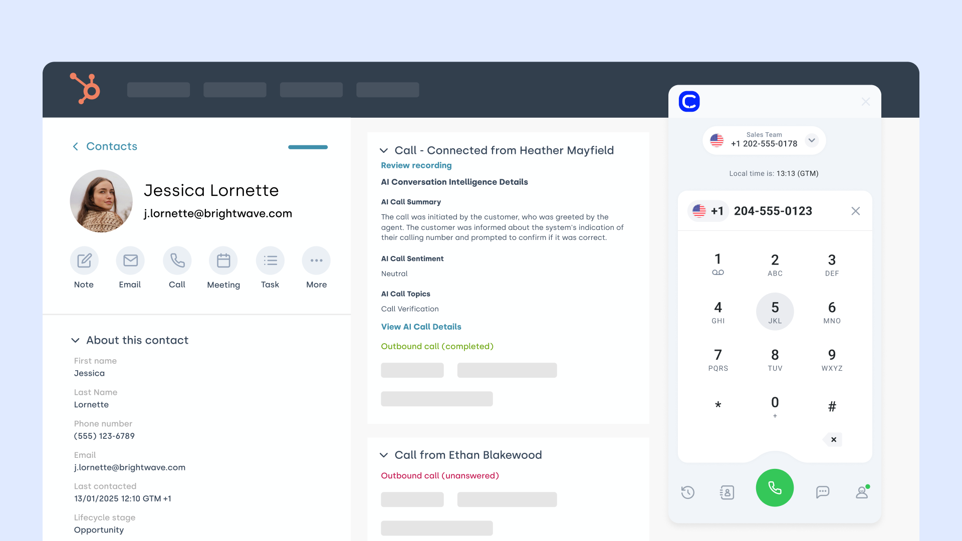 Capture Actionable Data via HubSpot Telephony Integration:Turn every conversation into a data point. This HubSpot telephony integration syncs call analytics and recordings to HubSpot automatically to simplify coaching and performance tracking.