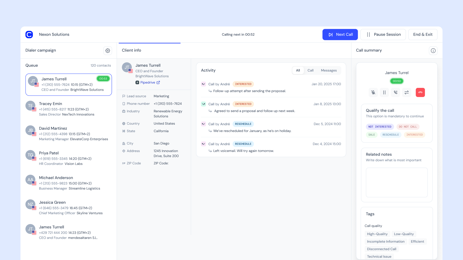 Accelerate your sales cycle by making and logging calls directly within your Pipedrive deal pipelines.