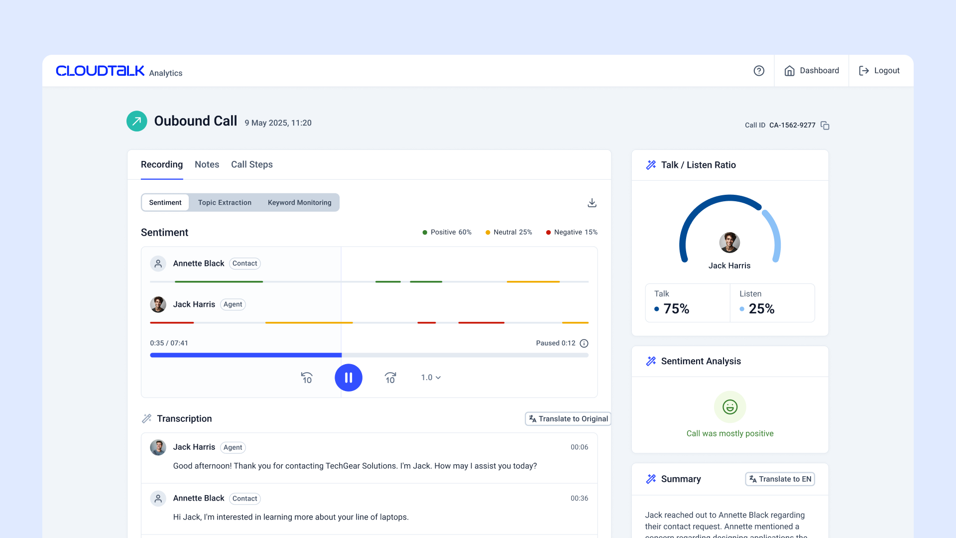 Summaries, transcripts, sentiment, automation, all built into a reliable calling foundation. Let your team focus on having conversations, not catching up.
