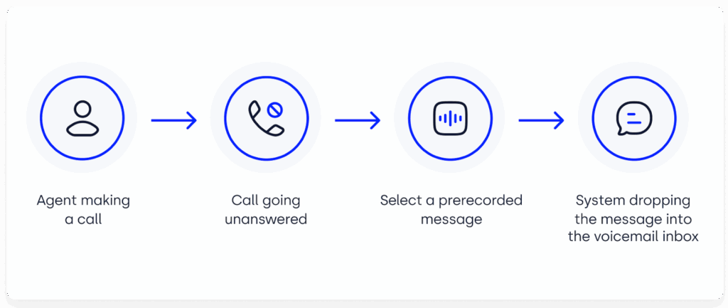 Voicemail drop software lets your reps call as usual, but once they get the voicemail, they can instantly “drop” a pre-recorded message instead of speaking live. It’s not technically ringless, but it eliminates wasted time and keeps voicemails consistent.