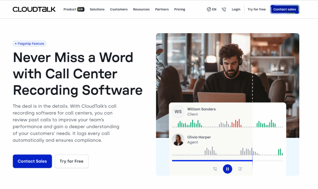 CloudTalk is a leading business phone recording system built for small and medium-sized call centers. It blends powerful call recording tools with analytics and automations to help sales and support teams stay sharp. Seamless integrations and crystal-clear call quality set it apart from other providers.