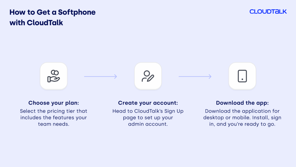CloudTalk is a cloud-based calling service using soft phones. Setting up your softphone for business with CloudTalk takes just a few minutes — no complicated installation or hardware required. Here’s how it works: