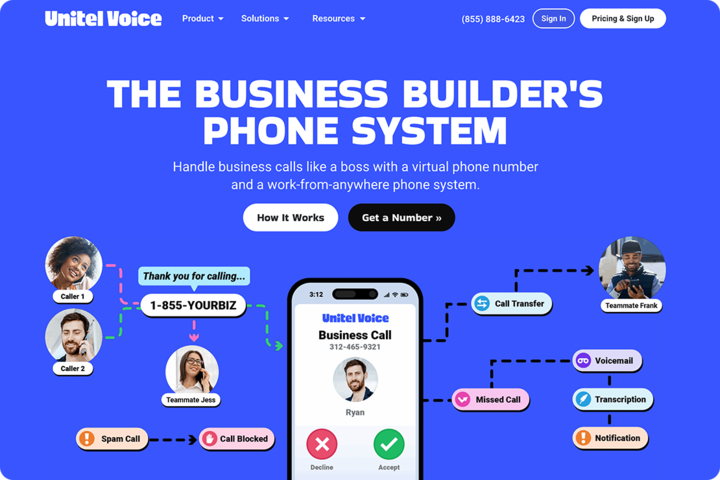 Unitel Voice is a virtual phone system designed for entrepreneurs, side hustlers, and small teams who want something easy to use. You can set it up in minutes, create a custom auto-attendant to greet callers, and run your business line right from your cell phone. There’s no need for extra hardware or IT help — everything is managed online with live personal support when you need it.