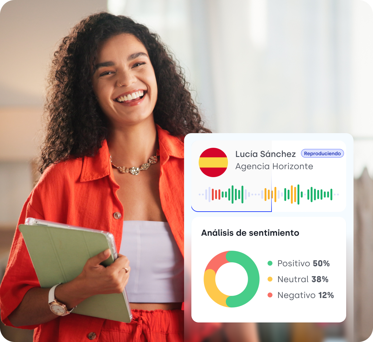 - Detecta cambios de tono y señales emocionales a lo largo de la llamada