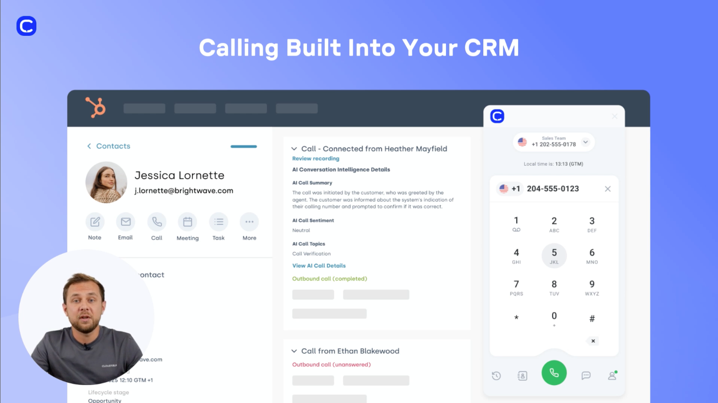Capture Actionable Data via HubSpot Telephony Integration:Turn every conversation into a data point. This HubSpot telephony integration syncs call analytics and recordings to HubSpot automatically to simplify coaching and performance tracking.