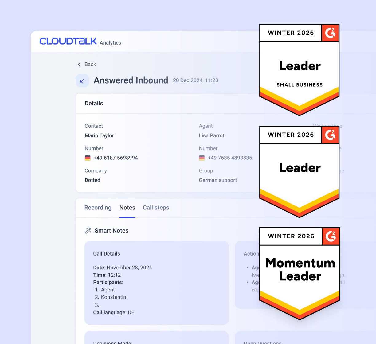 Contact Center Features that Make CloudTalk a G2 Leader