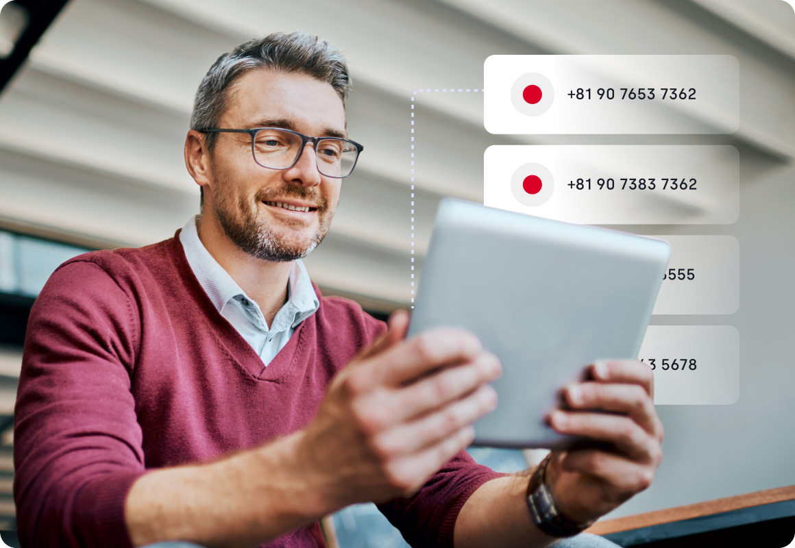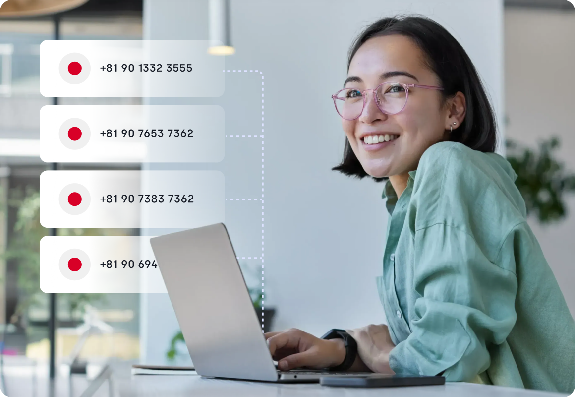 Display a local +81 caller ID to look local and increase trust when calling prospects. It helps you ramp up answer rates and make every dial feel familiar, no matter where your reps work from.